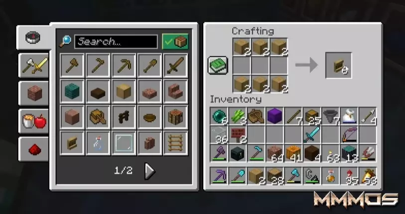 Traditional item storage requires opening a GUI (Graphical User Interface). This build bypasses that step entirely, treating the Shelf not just as decoration, but as a dynamic storage block. When your empty rocket stack is in your hand, a quick right-click on the shelf immediately pulls a full stack from the hopper system and places it into your hotbar.